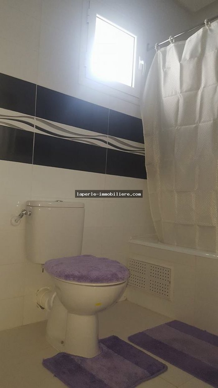 A louer annuellement à Hammamet un spacieuse appartement S+2 neufs de haut standing bien meublé appartiennent à une résidence prestigieuse bénéficiant d'une localisation privilégiée dans un quartier animé à deux pas de la plage