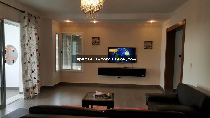 A louer annuellement à Hammamet nord un spacieuse appartement S+3 neufs de haut standing meublé oappartiennent à une résidence prestigieuse bénéficiant d'une localisation privilégiée dans un quartier animé et idéal.