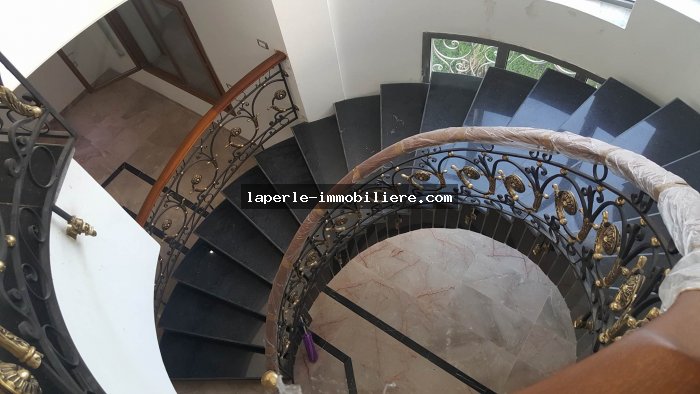 La villa se situe dans un lotissement gardé, très bien orientée, implantée sur un terrain de 875 m², 1300 m² habitables entre Sou sol, RDC et étage.