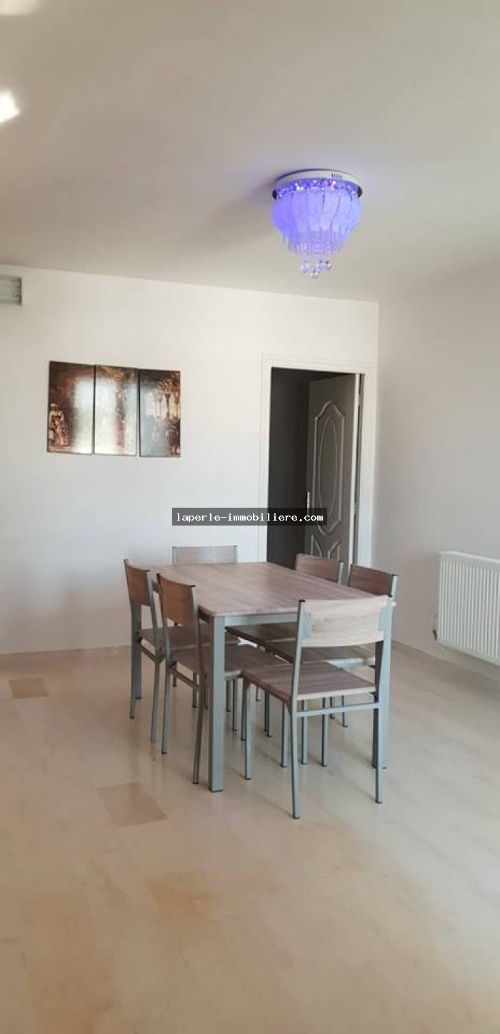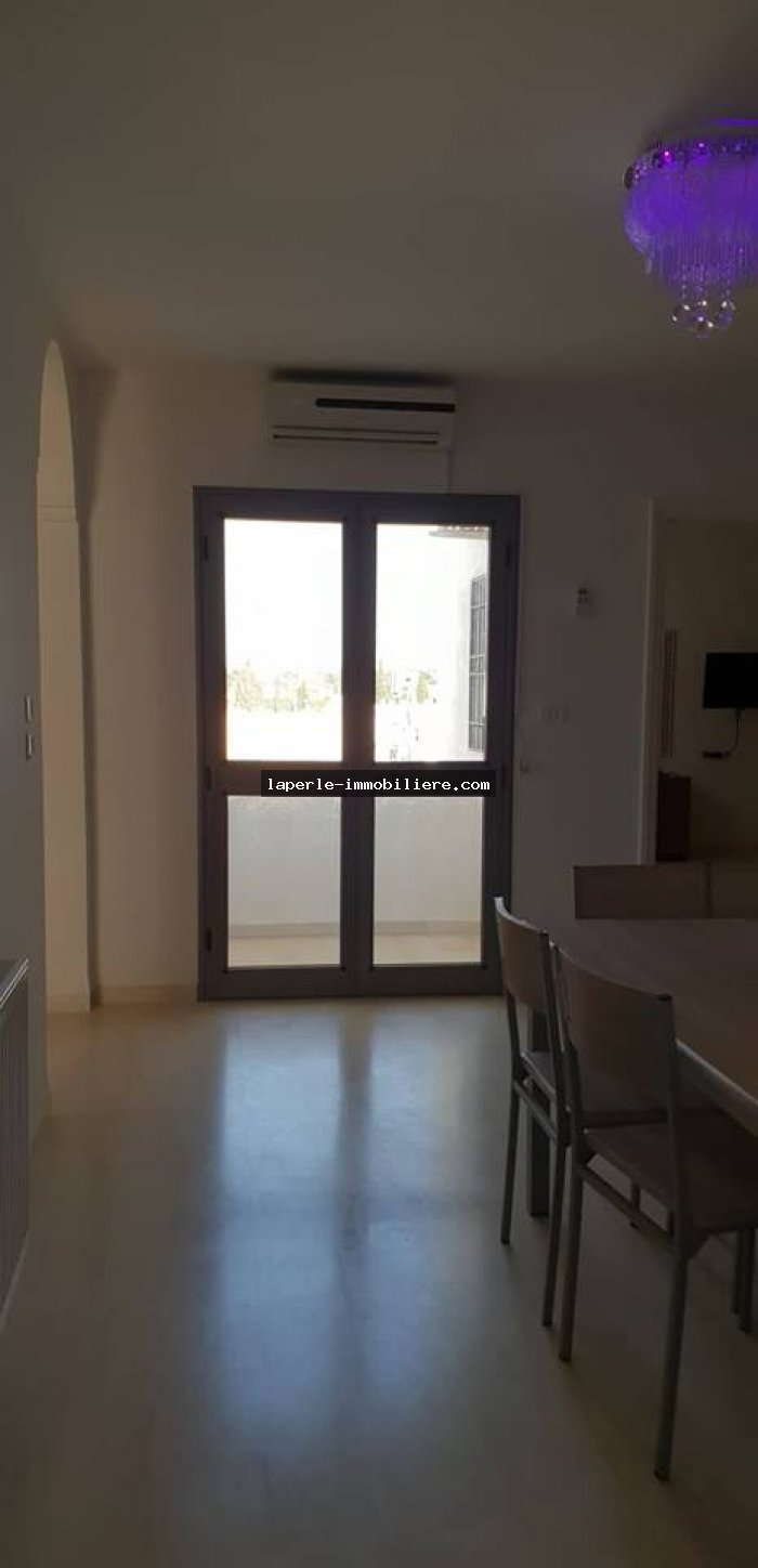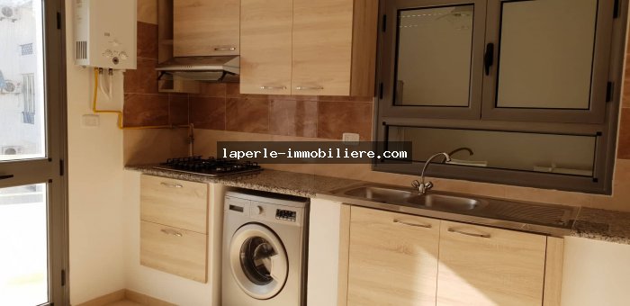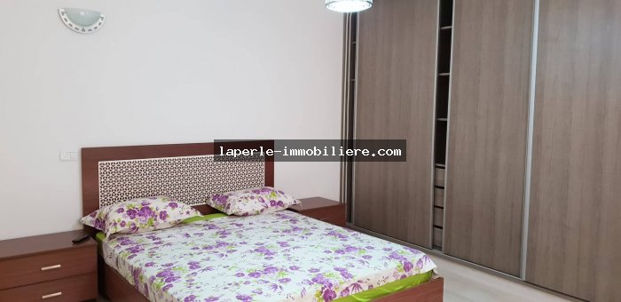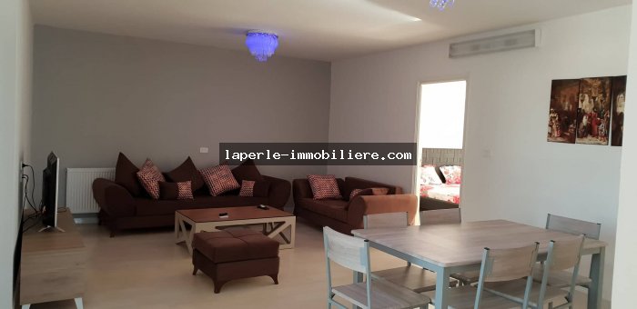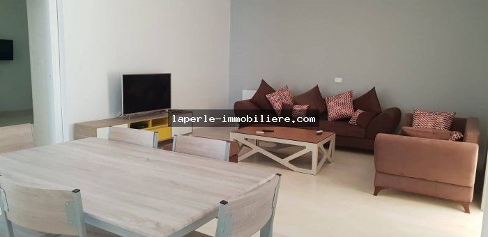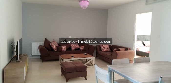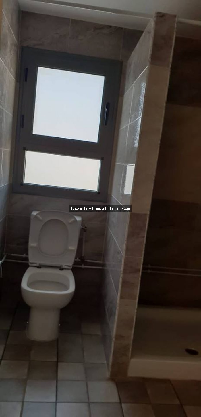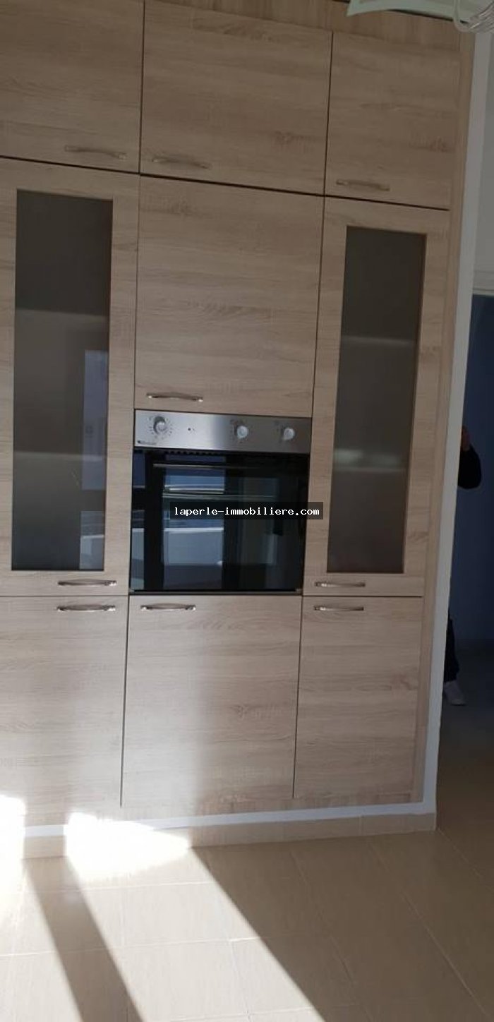 A louer annuellement chez notre agence La Perle Immobilière un somptueuse appartement au 2éme étage située à Hammamet coté théâtre dans un endroit calme et de bon voisinage pas loin de toutes commodités sachant que ce bâtiment n'était pas habité auparavant.