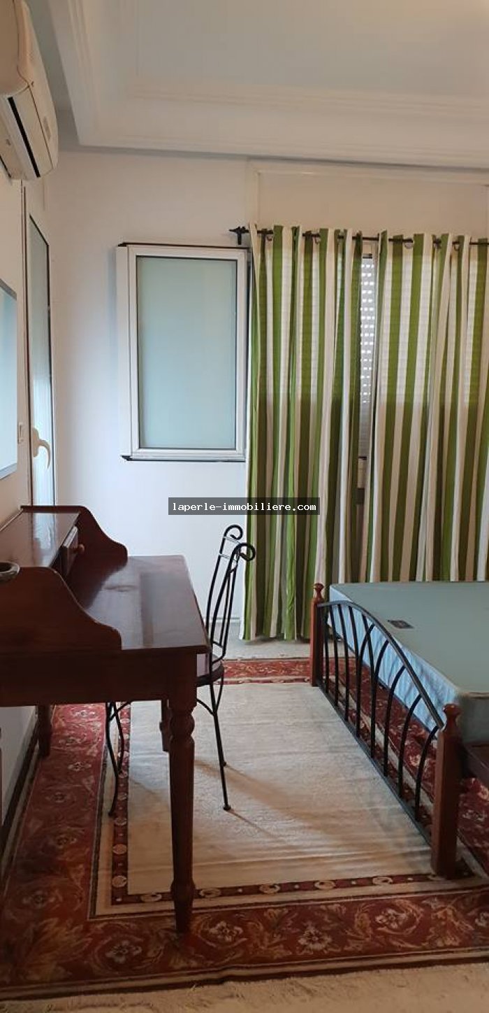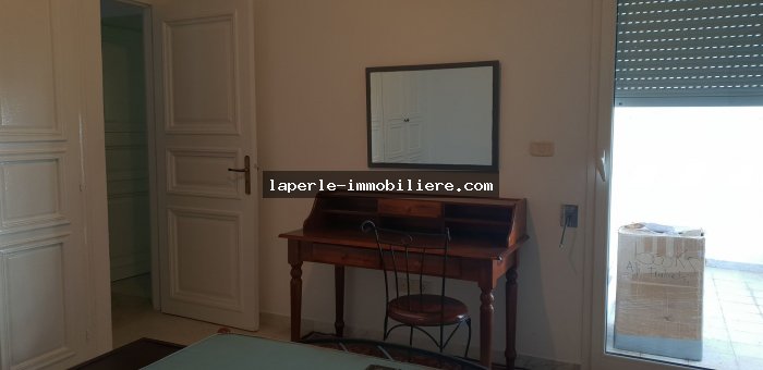 A louer annuellement chez notre agence La Perle Immobilière un somptueuse appartement au 3éme étage située à Hammamet coté théâtre dans un endroit calme et de bon voisinage pas loin de toutes commodités.