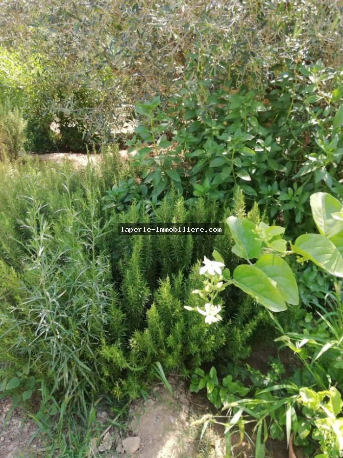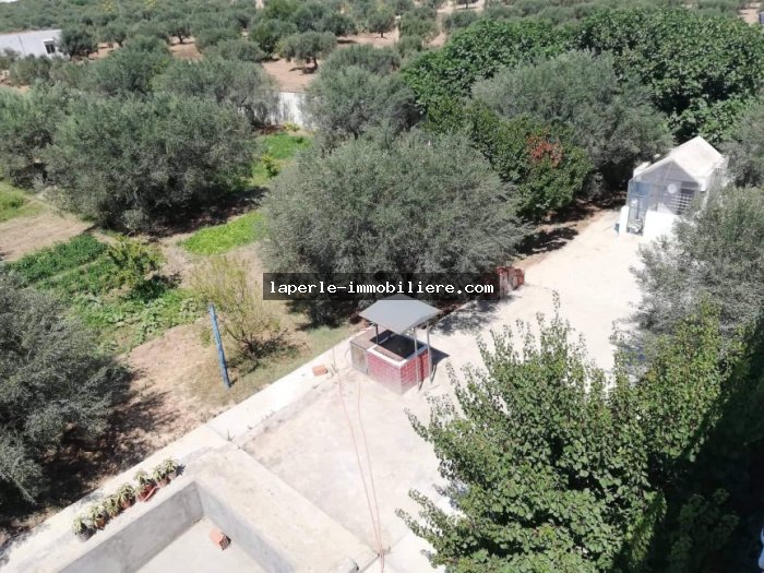 32 olives,Pommes, grenades, Pêches et abricots ,sondage,Electricité force, Villa avec piscine et studio intendante.