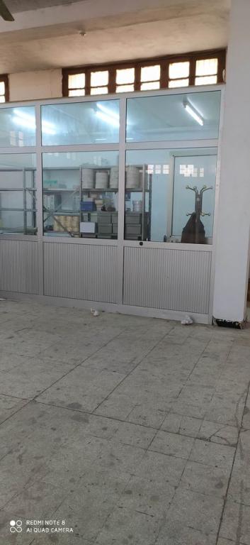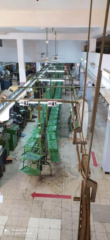 se compose de deux salles de stockage ,deux salle de production cinq bureaux administratifs réception d 'accueil bloc sanitaire h/f et une vestiaire un quai d stationnement .