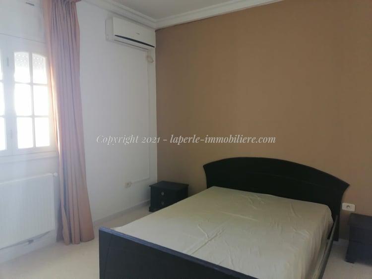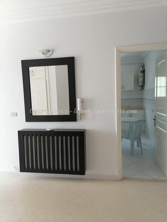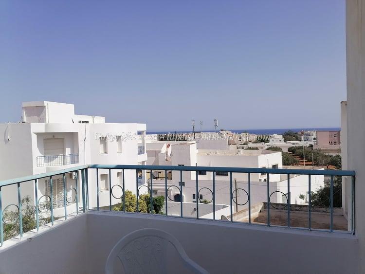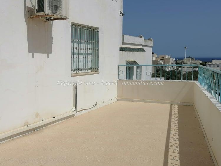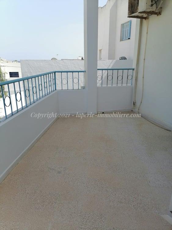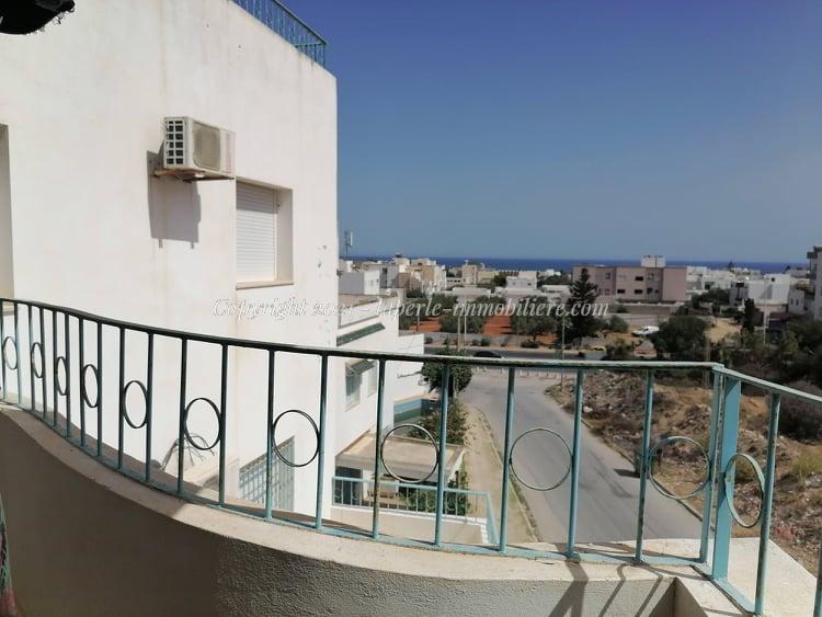 Appartement au 1 er étage à louer à l'année à Hammamet Nord __ rond point sultane, de type S+2 chauffées et climatisées. On trouve un salon ,une cuisine , 2 chambres à coucher et une grande terrasse avec vue de mer .