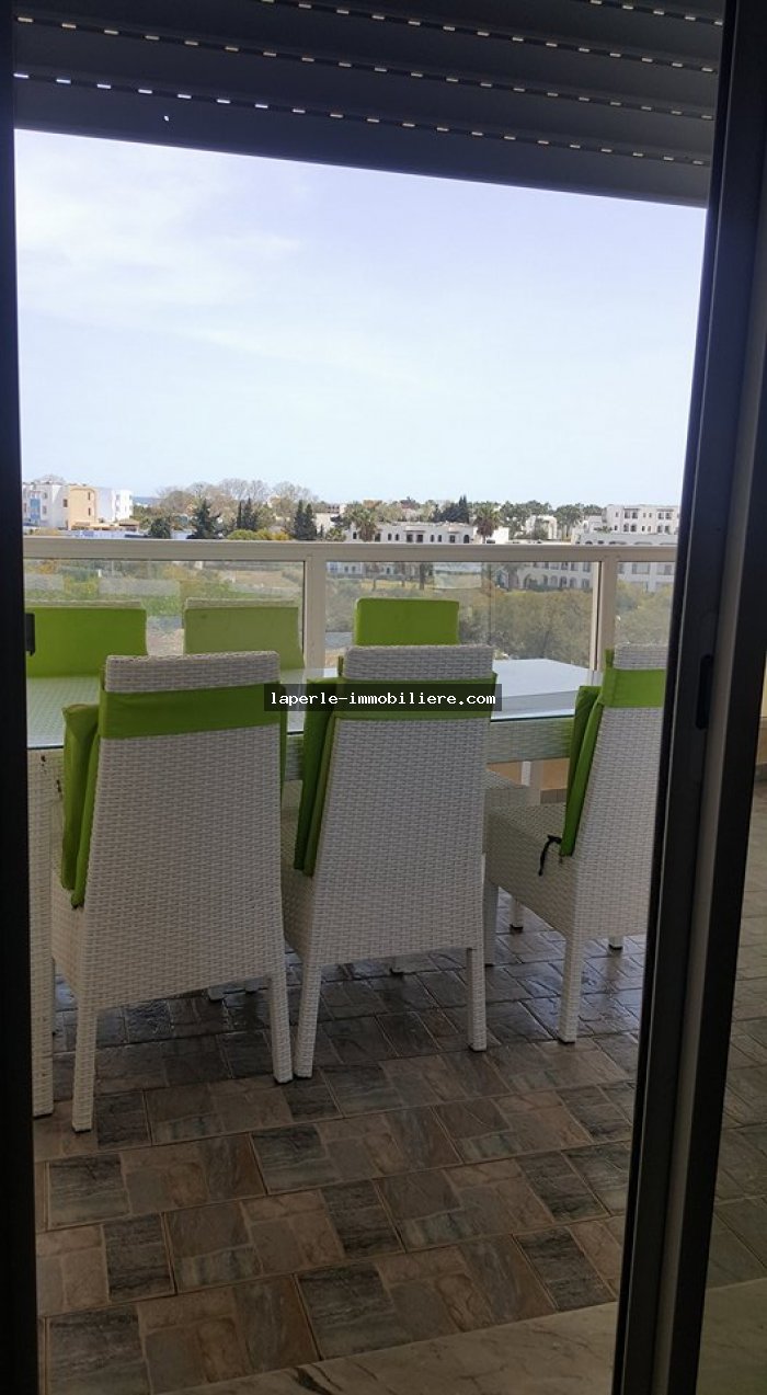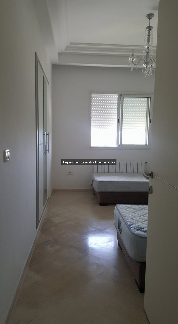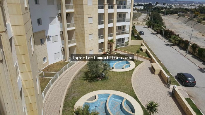 Appartement au 2ème étage dans une résidence sécurisée avec ascenseur et piscine collectifs au cœur de jinen Hammamet proche de la plage et de la Marina il est distribué comme suit :