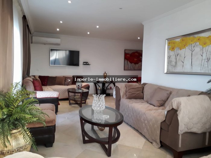 Une grande salon , Salle à manger,2 chambres doubles , cuisine indépendante très bien aménagé , salle d'eau , salle de bains,2 marbres encastrées, hull