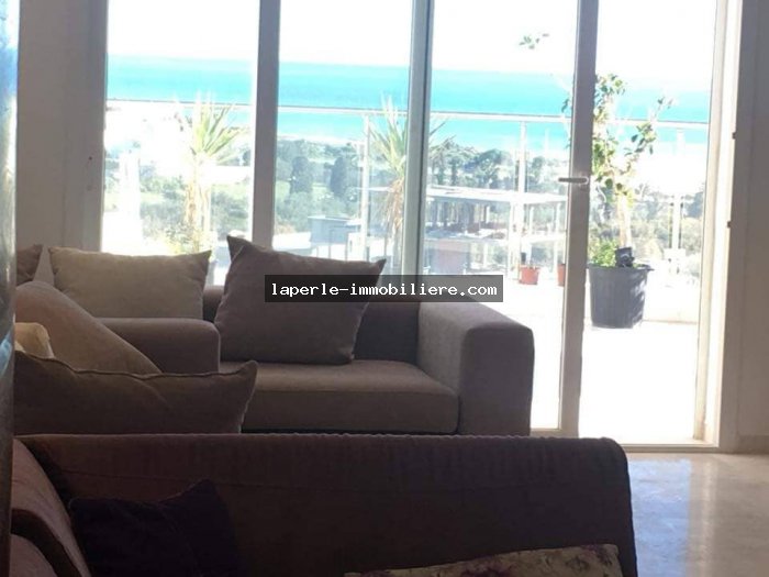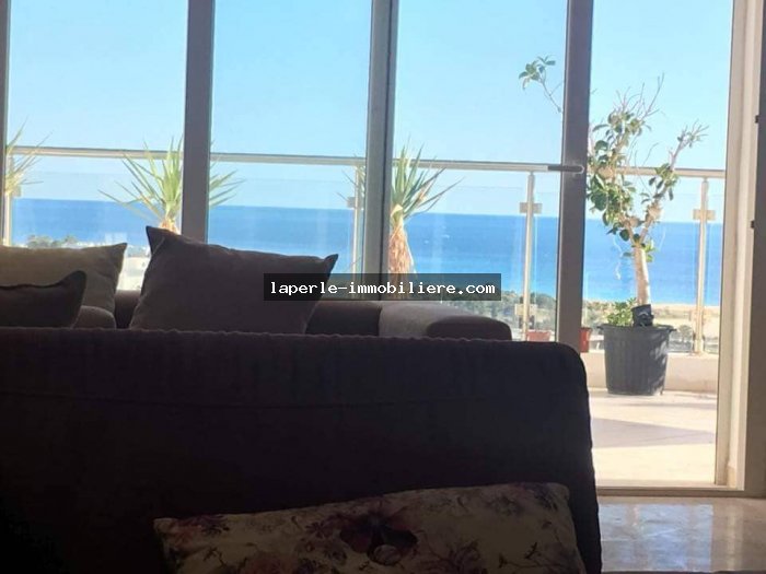A vendre chez notre agence la perle immobilière dans un résidence privée e sécurité a Mrezga un appartement S+2 avec une belle vue du mer au 6 étage .