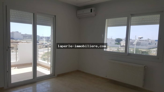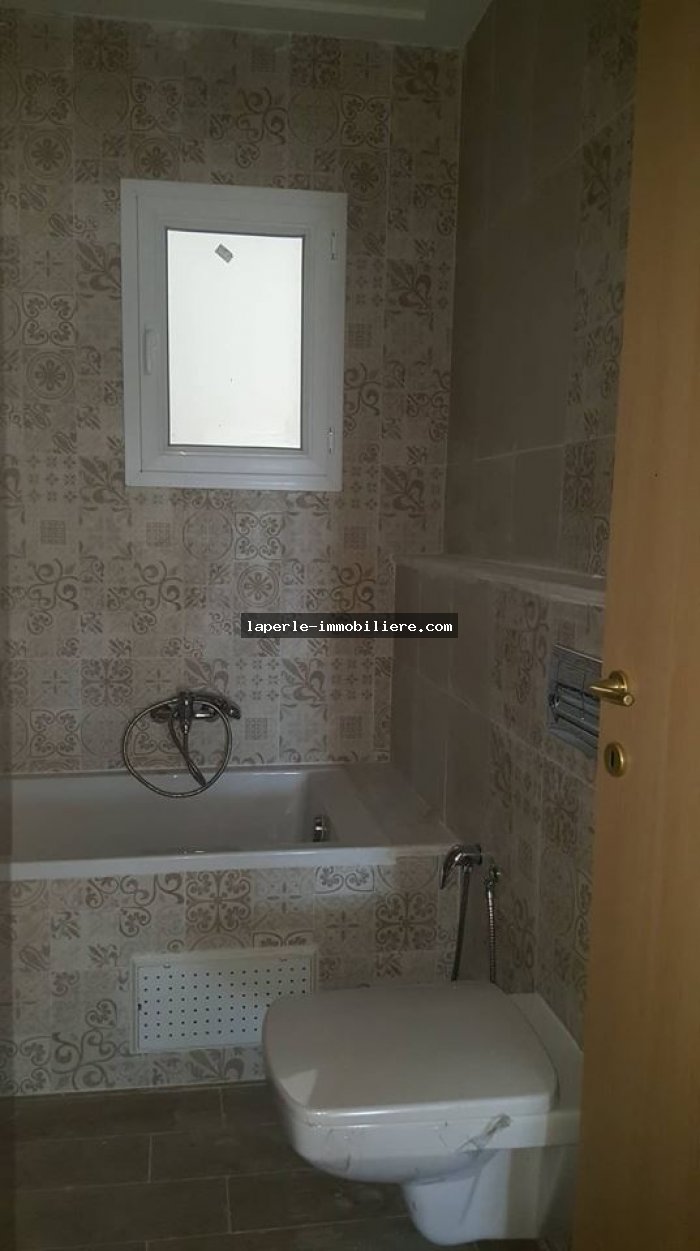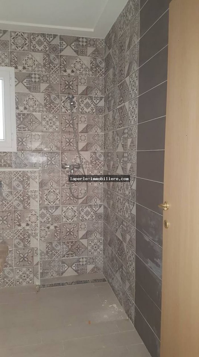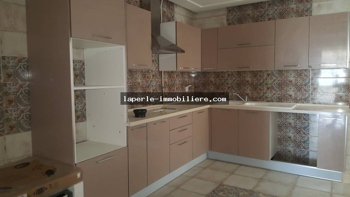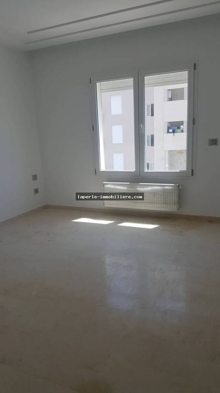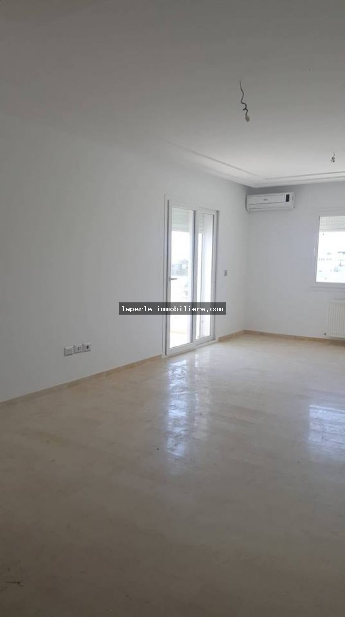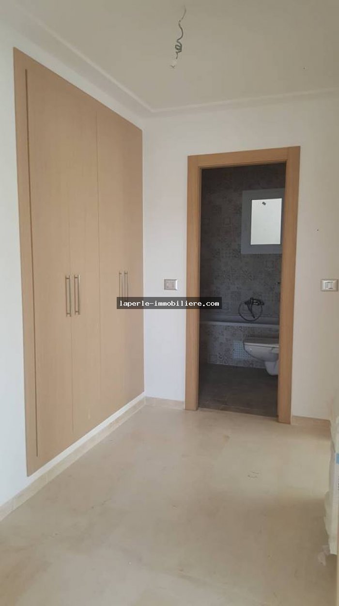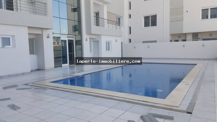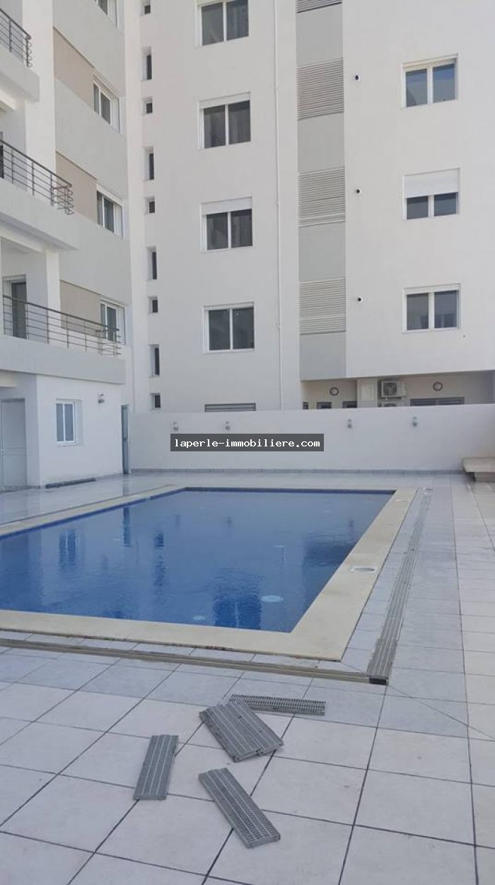 A vendre chez notre agence la perle immobilière un appartement S+3 au 1ère étage se dispose d'un grand salon avec grand tirasse, une suites parentale, un salle d'eau,deux chambres a coucher avec dressing,une salle de bain,une cuisine bien équipée séchoire et balcon ouvre directement sur la piscine.mettre carré couver 175m².