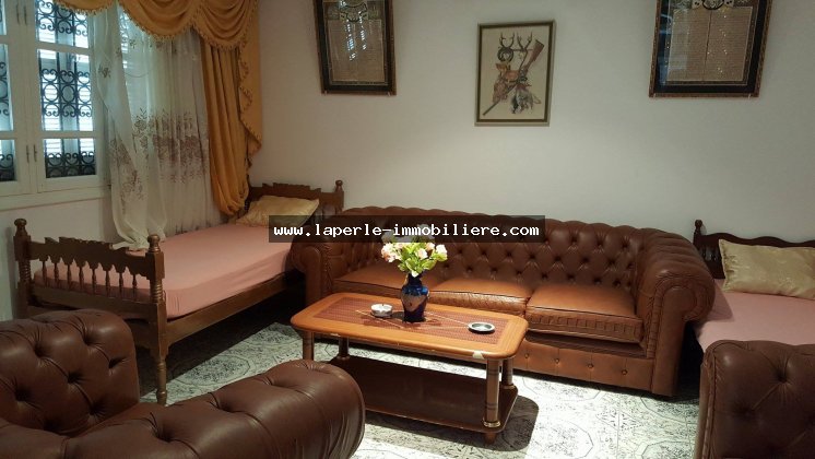 A louer pour les courtes durées chez l'agence La Perle Immobilière, une coquet maison située au 2éme étage à Hammamet dans un quartier résidentiel calme, sécurisé et garder.