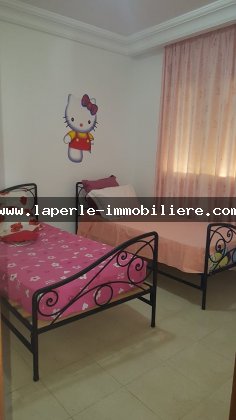 A louer chez l'agence La Perle Immobilière, une coquet appartement située à Hammamet dans un quartier résidentiel calme, sécurisé et garder.