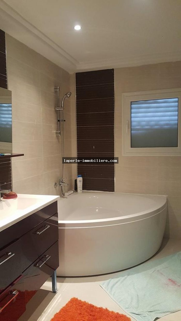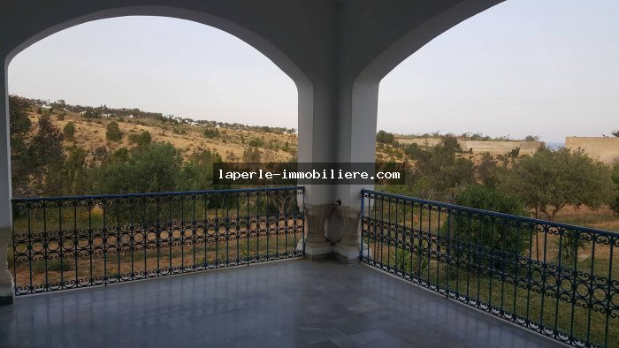 A vendre une majestueuse villa avec une autre villa en cours de construction bâtie sur un terrain de 3000m² et couvert 714m² anis un appartements prêt sise à Hammamet nord dans une quartier gardée, sécurisée et calme qui donne sur un panoramique vue sur montagne et mer.
