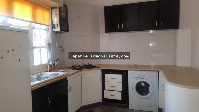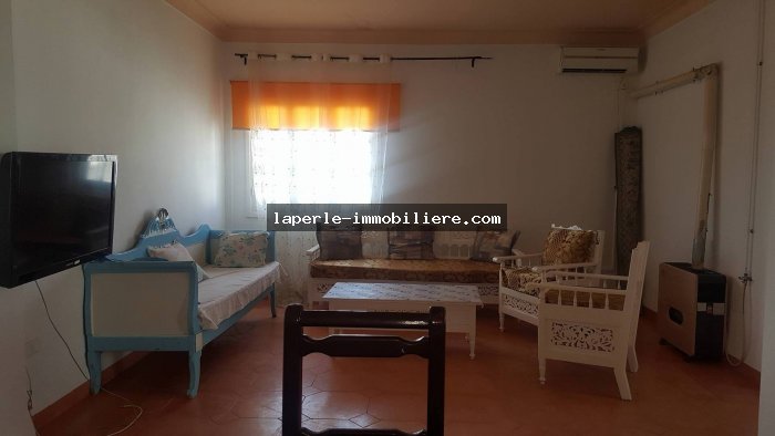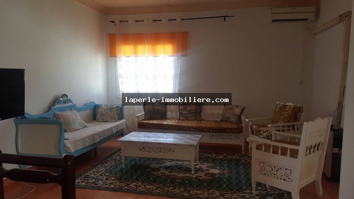 A louer chez notre agence La Perle Immobilière pour des courtes ou des longues période un somptueux appartement situé au 1er étage d'une villa à Hammamet pas loin de la plage.