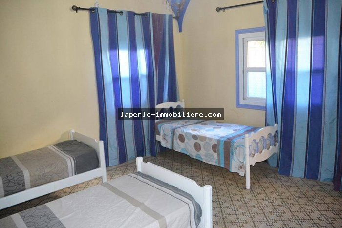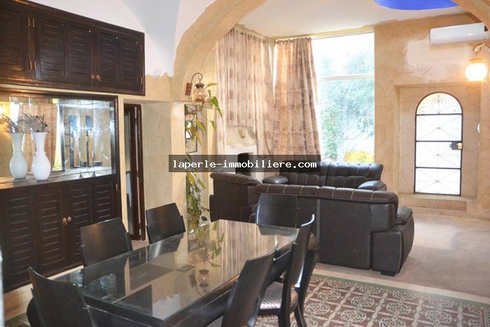 A louer chez notre Agence La Perle Immobilière une belle demeure au style arabe contemporain avec magnifique formes volume et toits en voûtes croisées, située a Hammamet proche Hôtel Sindbad.