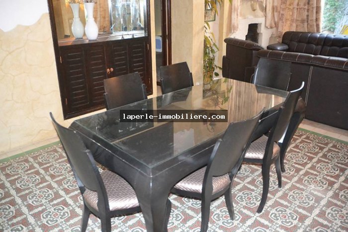 La Villa compte une vaste salon moderne et une autre de style arabe, une salle à manger, deux chambres à coucher, une salle de bain et une cuisine bien équipée.