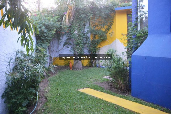 A l’extérieur la villa dispose d’un jardin gazonné, une belle piscine et une place parking disponible.