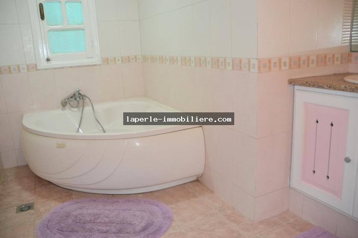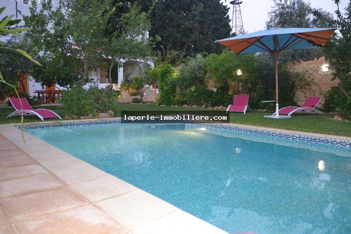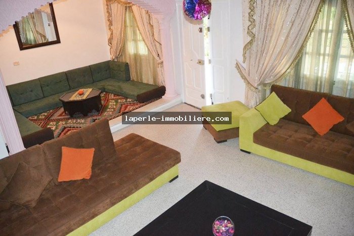 La Villa est érigée sur deux niveaux et elle offre une vaste salon moderne et une autre de style arabe, une salle à manger, trois chambres à coucher, deux salles de bain, une douche et une cuisine bien équipée.