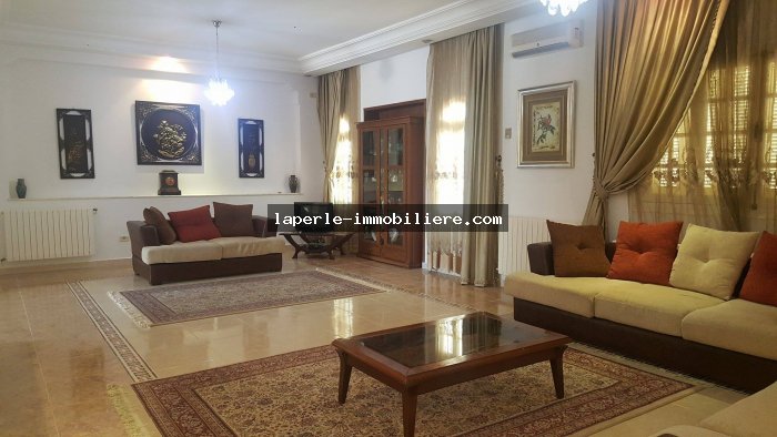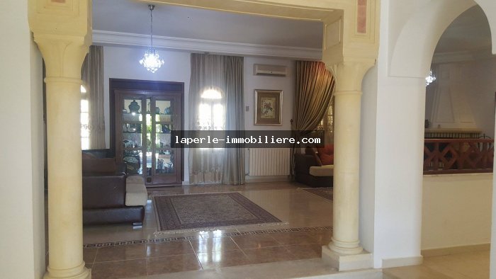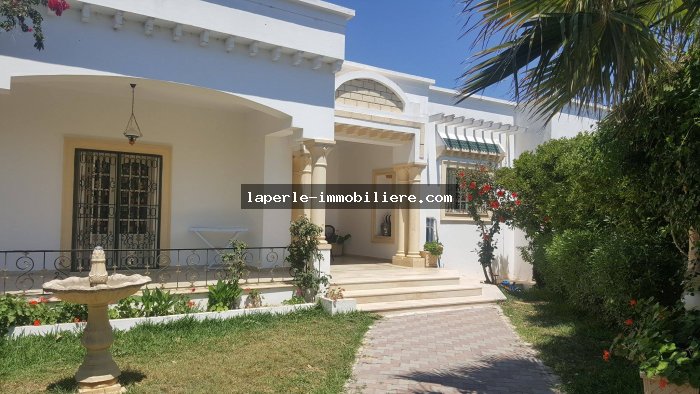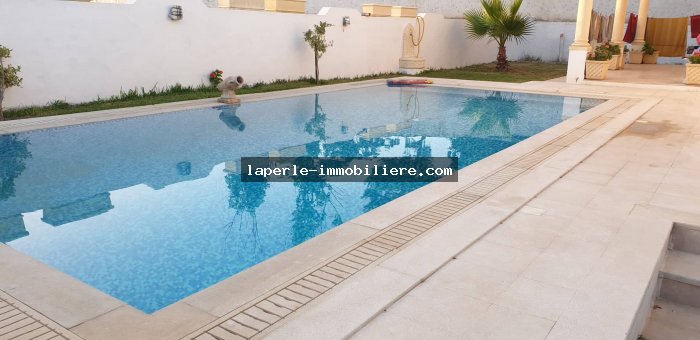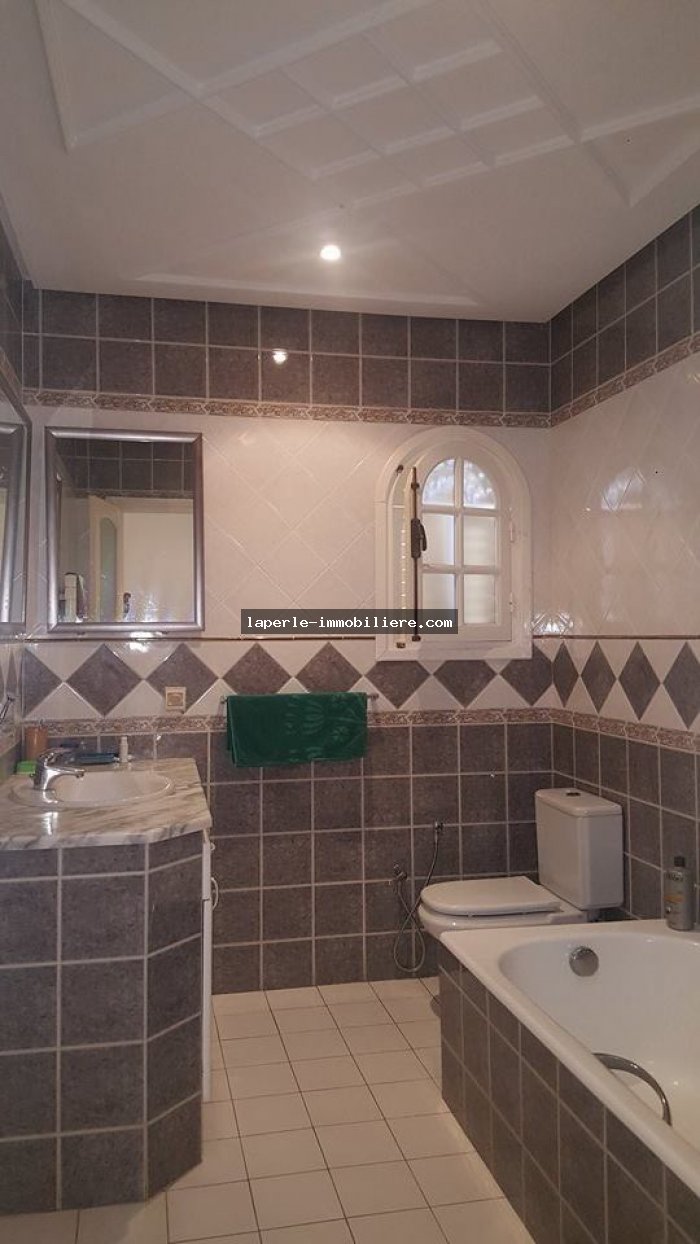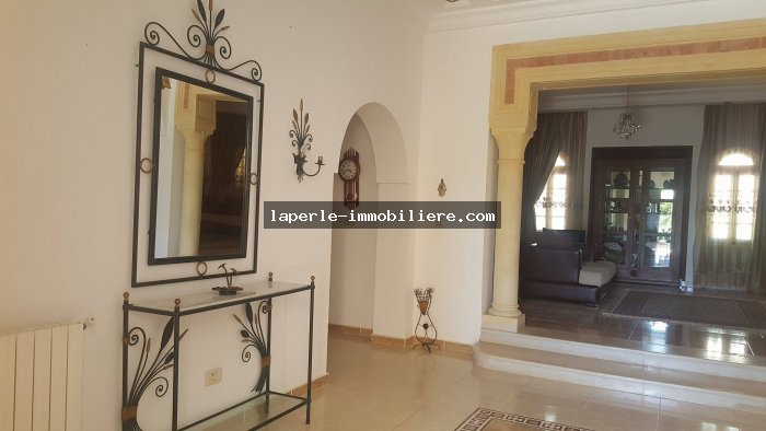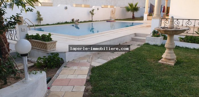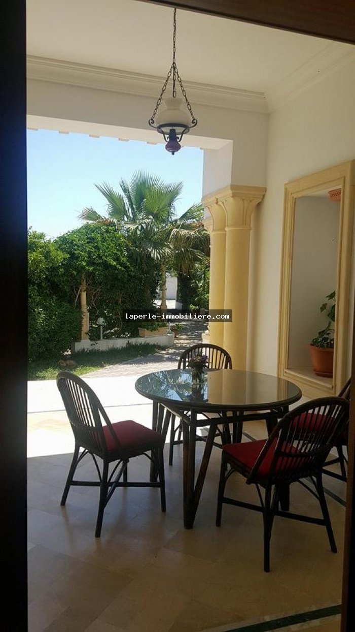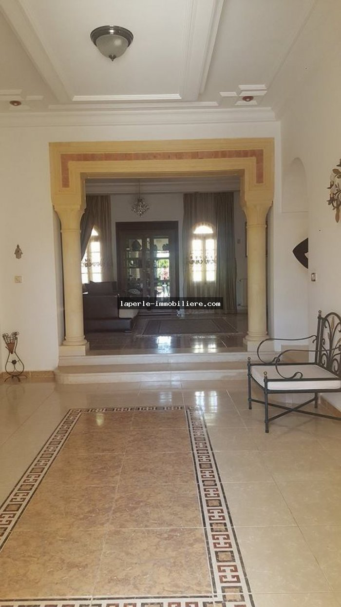 A louer chez notre Agence La Perle Immobilière une majestueuse villa situé dans un endroit calme et bien gardée zone théâtre à Hammamet.