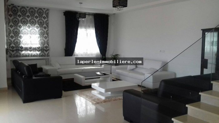 A louer chez notre Agence La Perle Immobilier une somptueuse villa située a Hammamet en face du l'espace carrefour market.