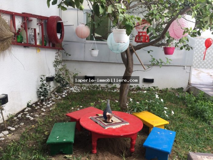 A l’extérieur la villa dispose d’un jardin gazonné, puits d'eau, chambre de travaux et un un coquette studio comme un centre d'esthétique.