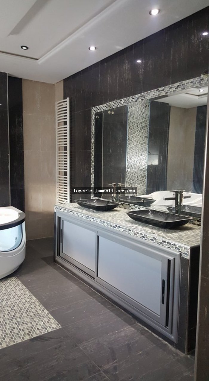 A vendre chez notre agence la Perle Immobilière deux somptueuse villas jumeaux neuve dans un lotissement résidentiel, de haut standing, avec une belle architecture moderne, située dans un quartier calme et sécurisé,sise à Tunis- Marsa et à proximité des commerces, animations, restaurants, hôtels. La villa est entourée d’un jardin gazonné.