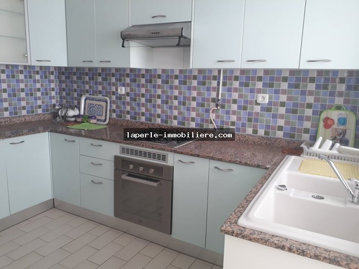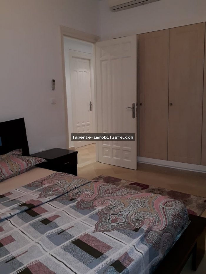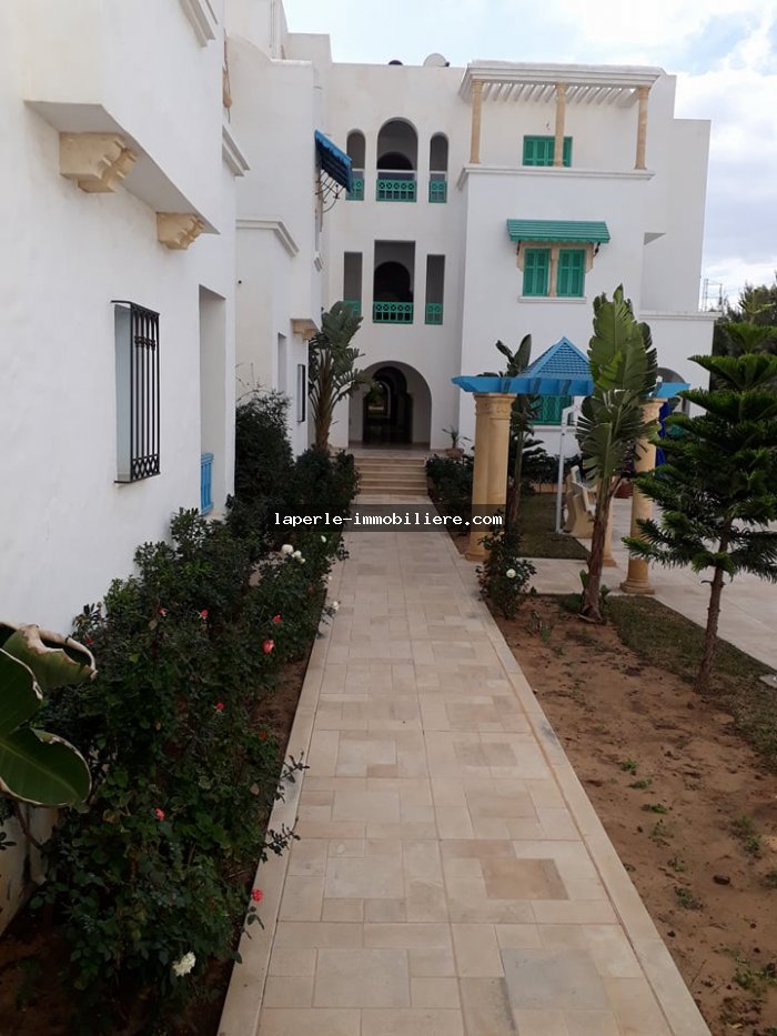 À louer bel appartement au RDC très bien placée situé à coeur yassmine hammamet très haut standing dans une résidence gardée avec piscine il se compose ;
