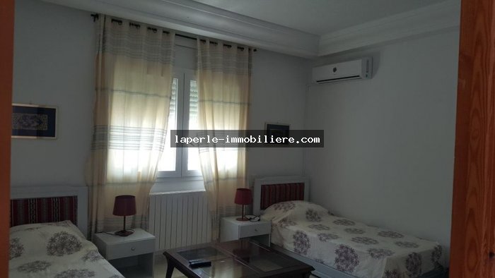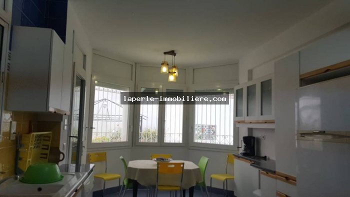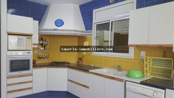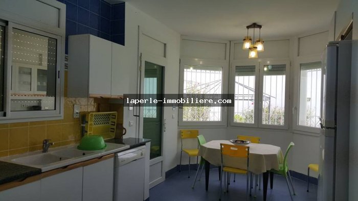 Nos cher clients pour votre vacance en famille notre agence la perle immobilier met à louer une somptueuse villa à deux pats de la mer avec un beau jardin , très bien placé dans un endroit très demandée , bien orienté toutes les pièces avec une luminosité et vue de mer .elle se compose comme suite :