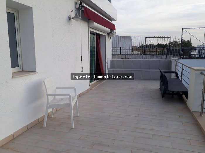 Agence La Perle Immobilière met a votre disposition un spacieuse appartement pour profiter votre vacance de type S+0 à Hammamet centre au 2éme étage dans une résidence calme et bien gardée.