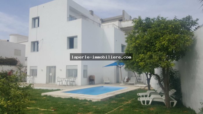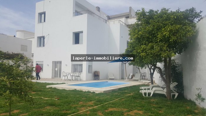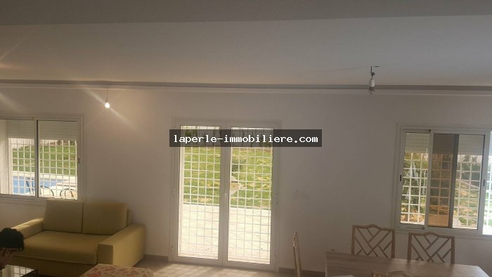 Nos cher clients profiter votre vacance en famille chez notre agence la perle immobilier.A louer une somptueuse villa avec un piscine, très bien placé , proche toute les commodité situé zone hôtel les oranger .La villa se compose comme suite :