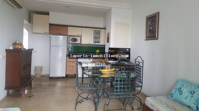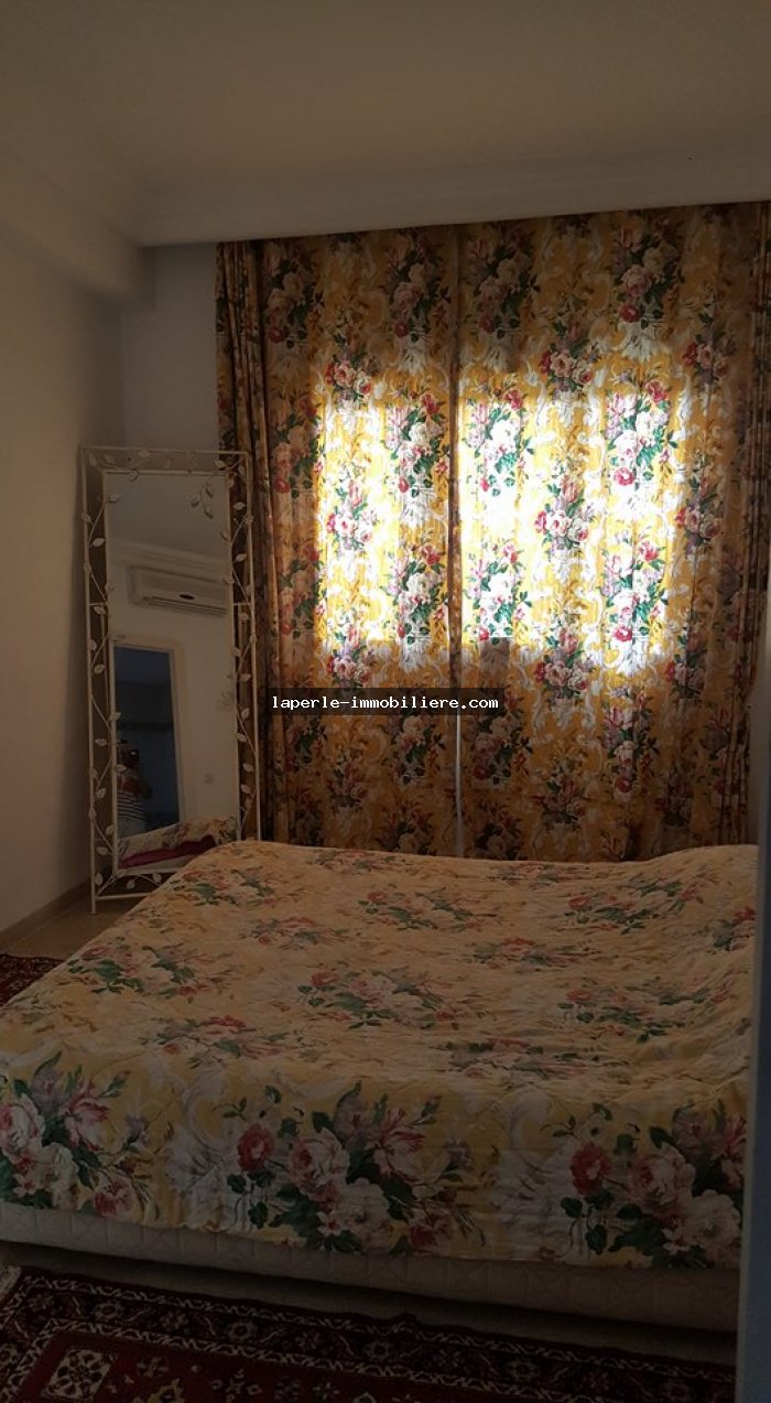 À louer bel appartement au RDC très bien placée situé à coeur yassmine hammamet très haut standing dans une résidence gardée avec piscine il se compose ;