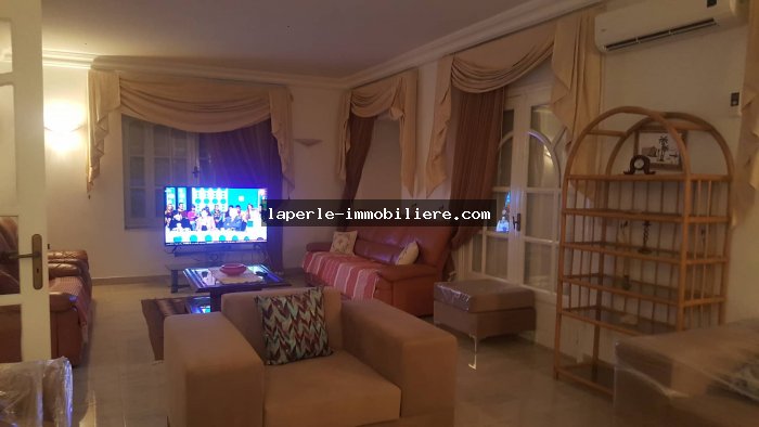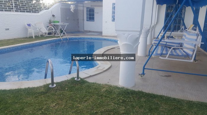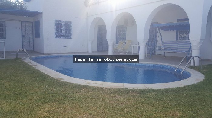 A louer chez notre agence La Perle Immobilière une charmante villa situé à Hammamet nord dans un endroit calme et de bon voisinage pas loin de toutes commodités et de la plage qui vous offre un séjour exceptionnel et inoubliable.