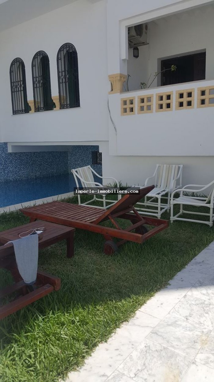 A louer chez notre agence la perle immobilier une charmante villa avec piscine situé à Hammamet Yasmine.