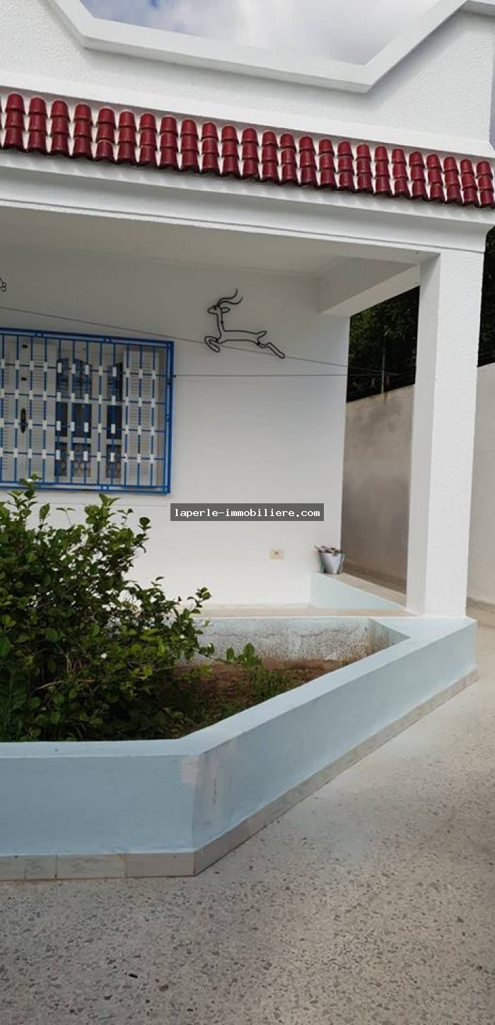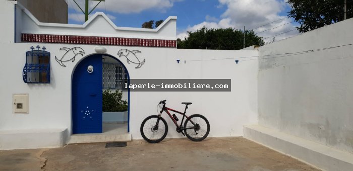 A vendre une coquette maison très bien placée situé à hammamet zone Fawara à proximité touts les commodités avec 2 entrées elle se compose comme suite: