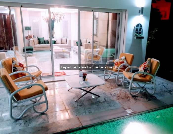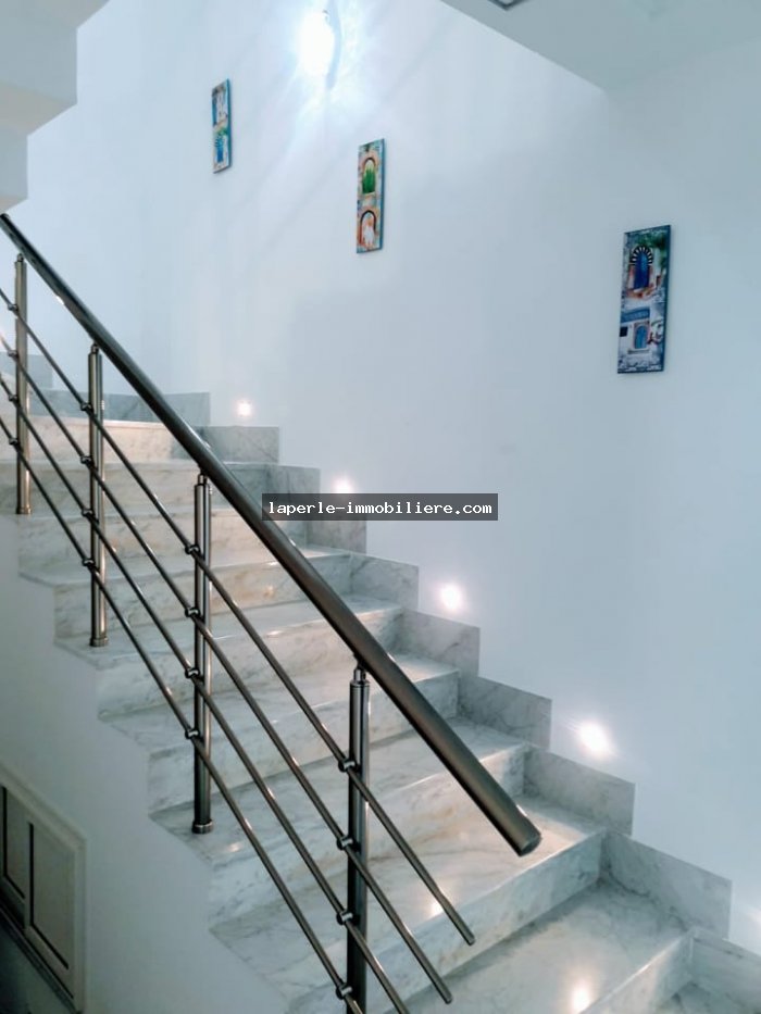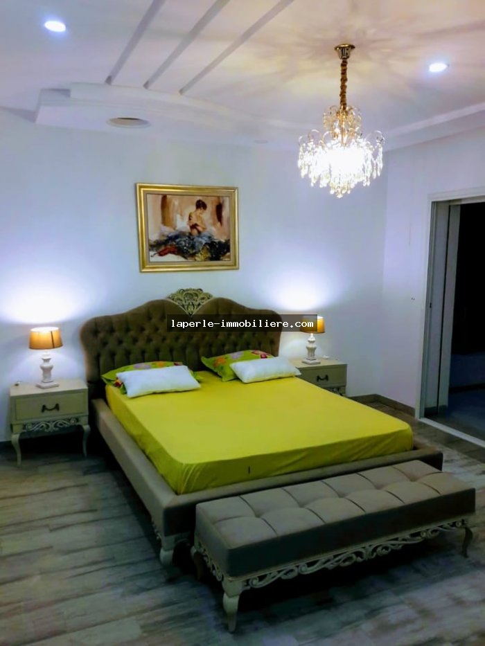 La Perle Immobilière vous propose à louer pour vos vacances une superbe villa de très haut standing et Neuve jamais habitée avec une belle piscine, et entourée avec un beau jardin gazonné .