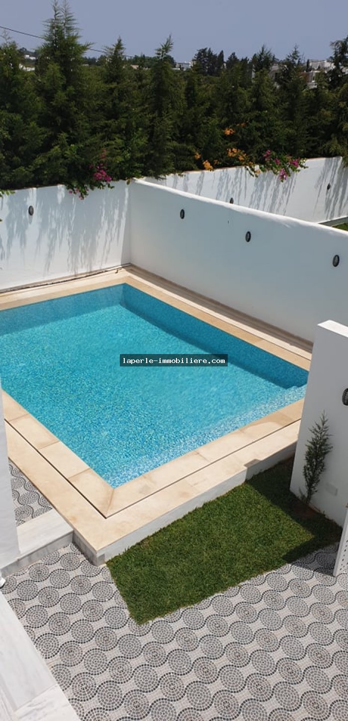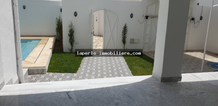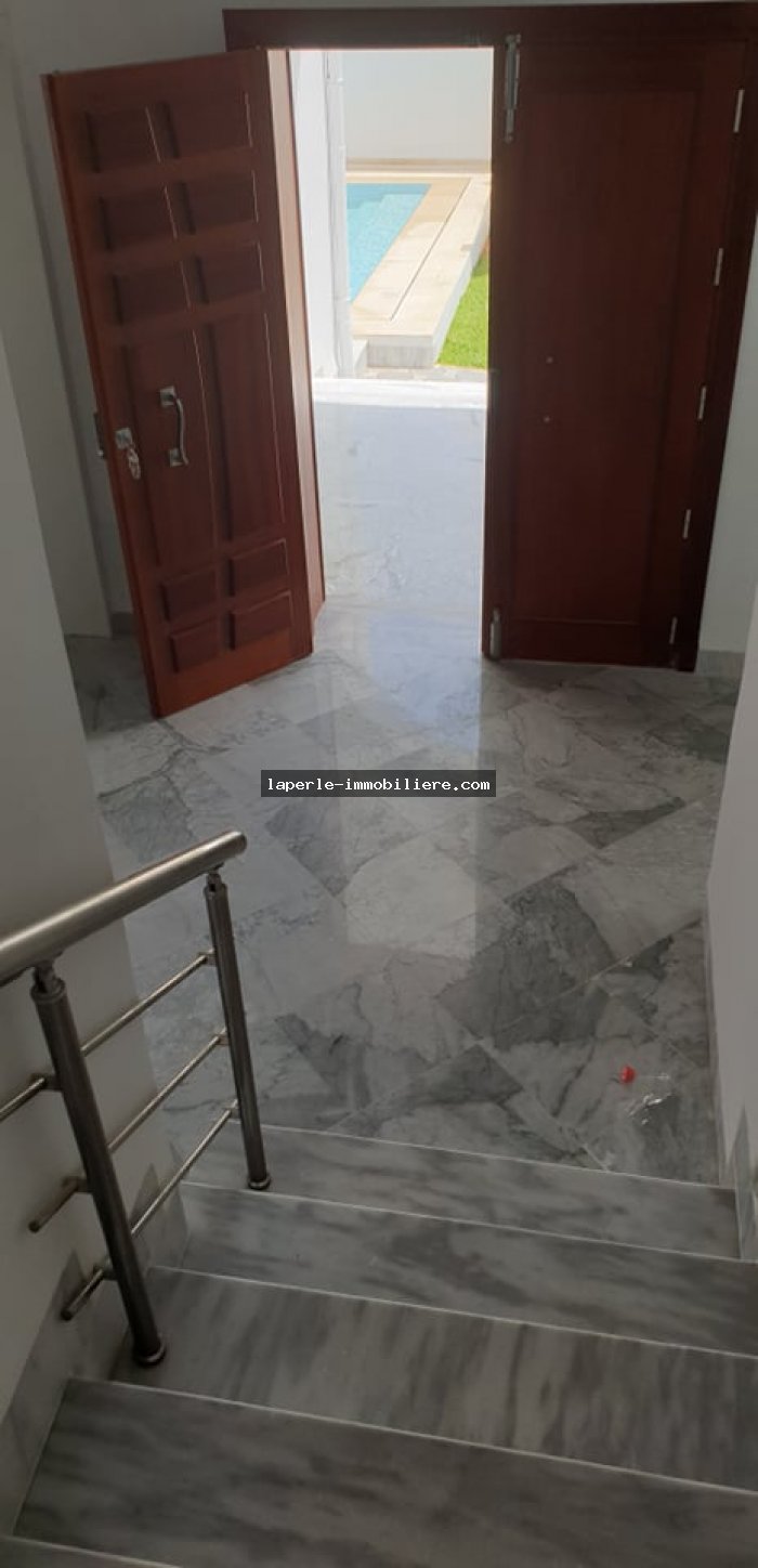 A vendre chez notre agence Immobilière une superbe Villa s+4 de 450 m² avec piscine à Hammamet Zone théâtre trés bien équipé (climatisation , chauffage central...).
