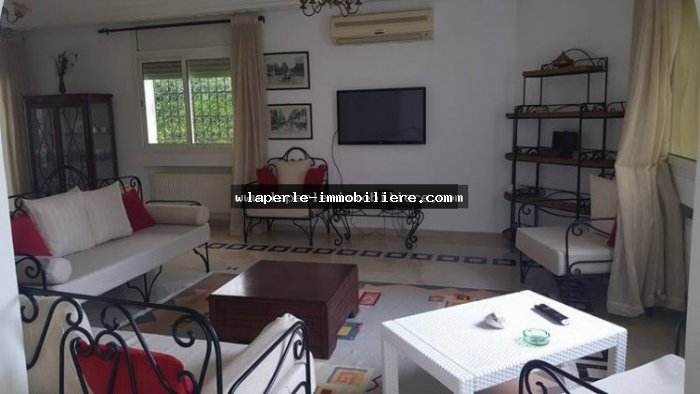 Cette villa contient deux beaux salons, trois chambres adorables,salle à manger, une salle de bain,et cuisine bien aménagée.