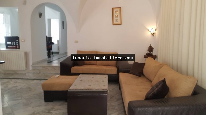 A vendre chez notre agence La Perle Immobilière une majestueuse villa de haut standing située dans un endroit calme zone théâtre à Hammamet.