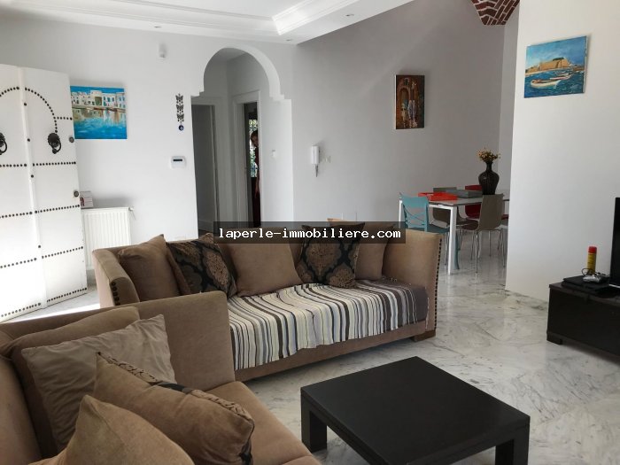 Elle se compose d'un grand salon , coin de salle à manger, suite parentale et une chambre à coucher en plus d'une cuisine bien équipée , salle d'eau et salle de bain.