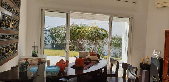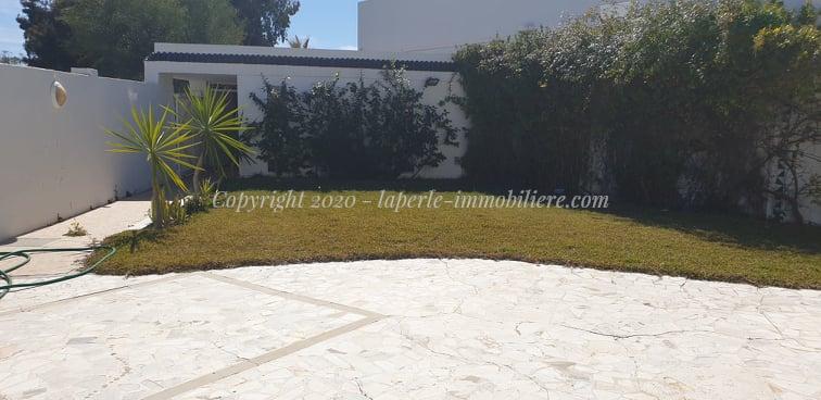 A louer pour les vacances au bien annuellement chez notre agence la perle immobilière une charmante villa avec une grand jardin gazonner, situé dans un quartier calme à Jinene Hammamet.