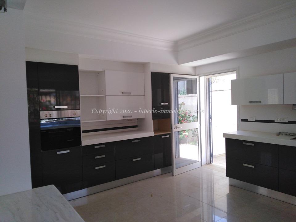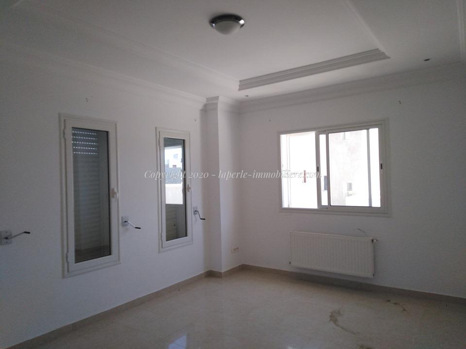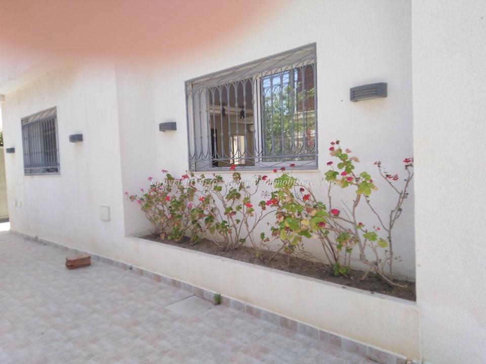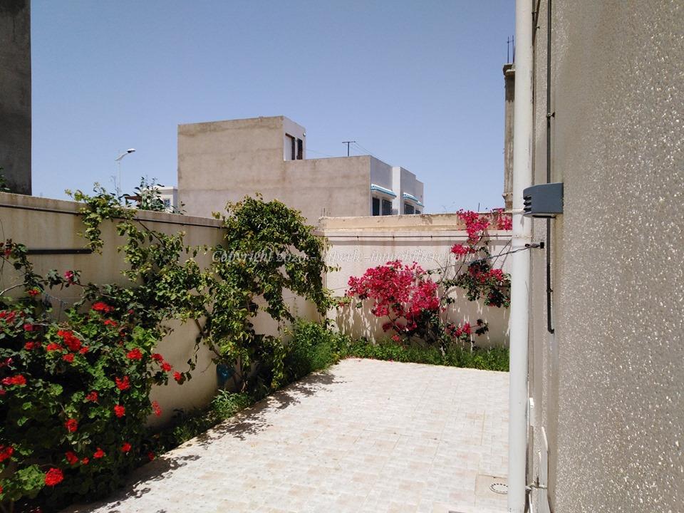 Rez de chaussé : l’entrée donne sur un terrasse jardin arboré , abri de voiture , il abrite un grand salon spacieux , partie nuit dispose de deux chambres à coucher , climatisé ,cuisine bien équipée , et salle d’eau avec doche.