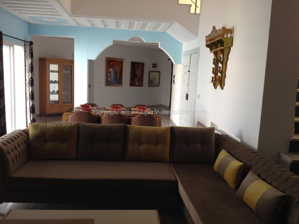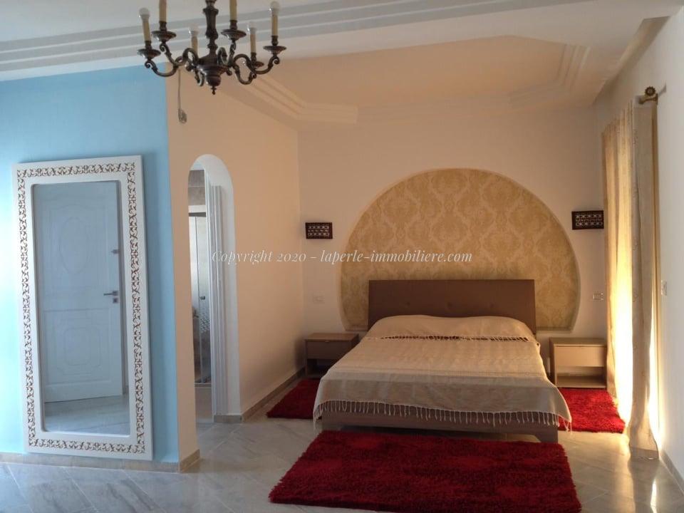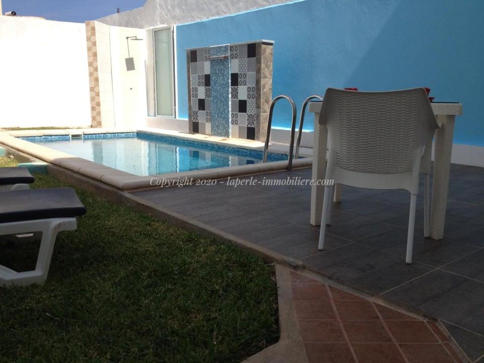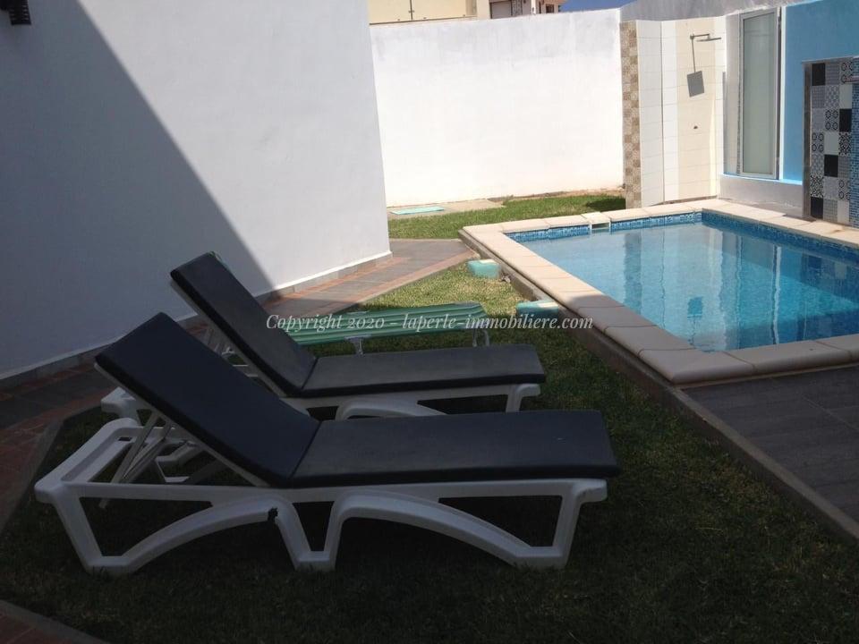 A louer chez notre agence La Perle Immobilière, une belle villa avec piscine située dans un quartier chic à yassmine Hammamet .