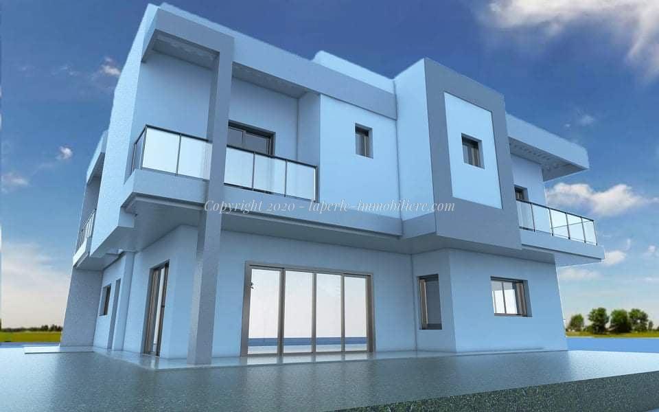 A vendre chez Notre agence La Perle Immobilière une belle villa en cours de construction situé dans un endroit calme zone calypso à Hammamet de superficie 400 m² dont 300 m² couvert .