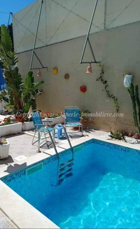 Pour vos vacances , la perle LaPerle Hammamet met à votre disposition pour la location estivale ,une belle #villa s+4 avec piscine située à hammamet Cartier hôtel sindbed elle est bien équipée et proche de la plage