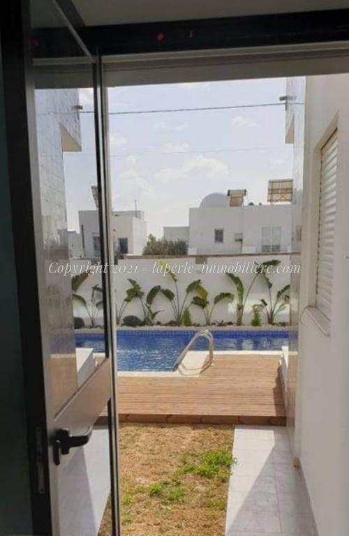 Au rez-de-chaussée on trouve un spacieux salon ouvrant sur une belle terrasse donnant une impressionnante piscine et un beau jardin fleuri, Une cuisine moderne une chambre et une salle d’eau. Quant à l’étage on trouve un suite ,deux chambres bénéficiant d’une magnifique terrasse et une salle de bain .