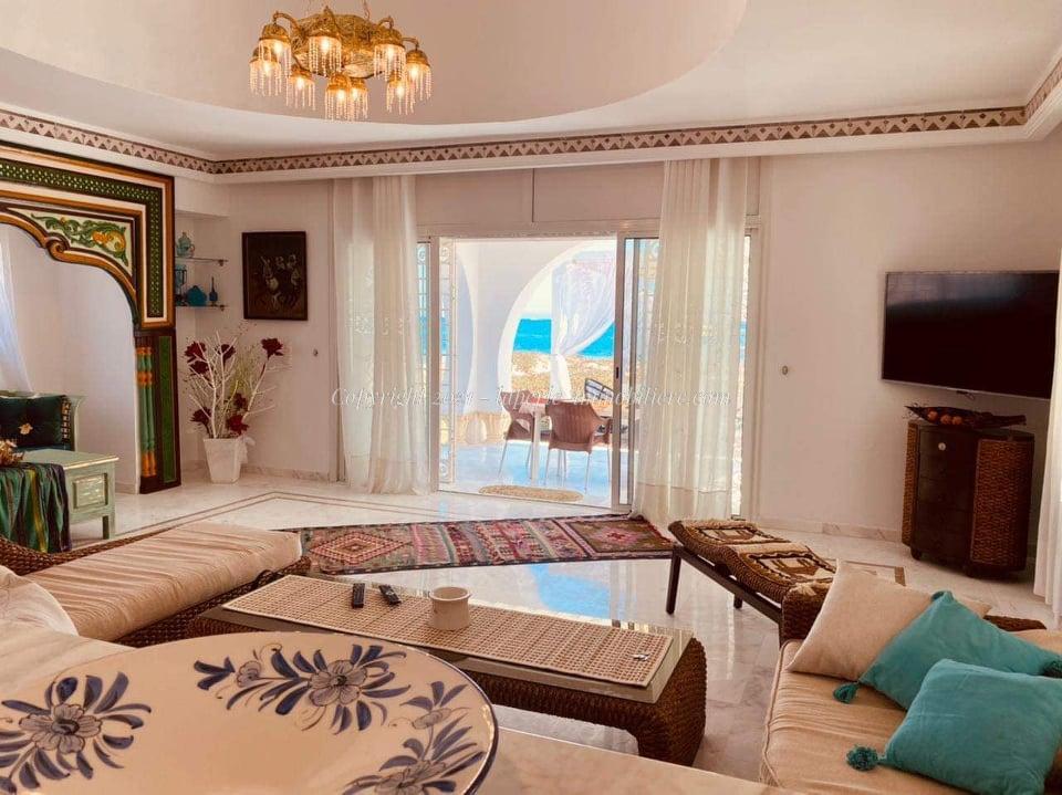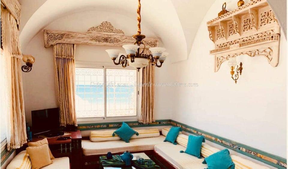 Pour vos location saisonnière dans un emplacement idéal Une demeure de charme pieds dans l 'eau de type s+5 à kélibia avec vue panoramique .