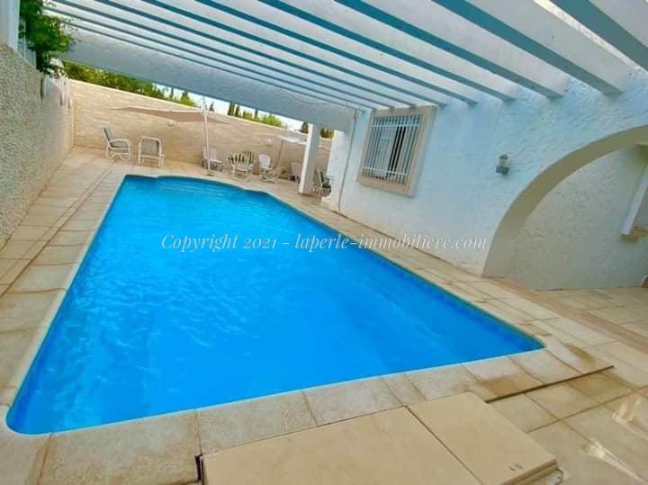 La perle LaPerle Hammamet met à votre disposition pour la location de vacances ,une belle #villa bien placé avec vue idéal et stratégique ouvrant sur jardin Gazonnée et un agréable piscine située à jinen Hammamet .