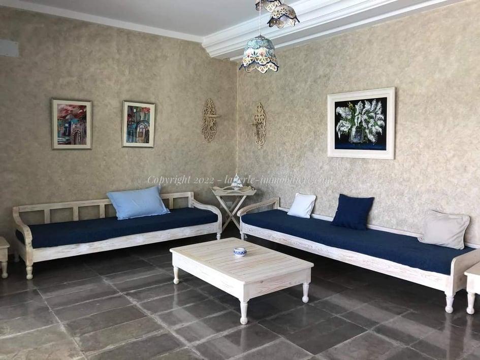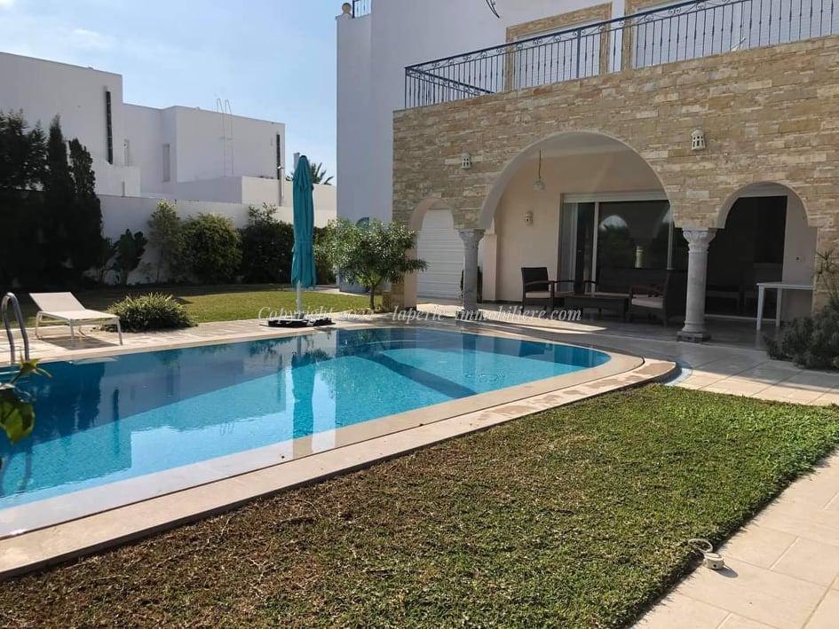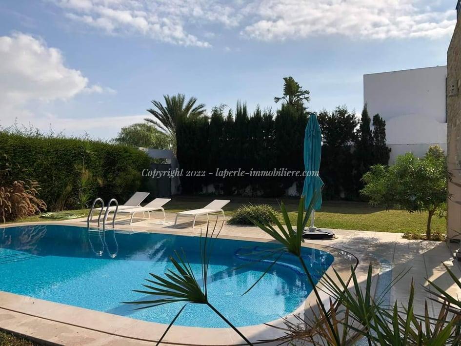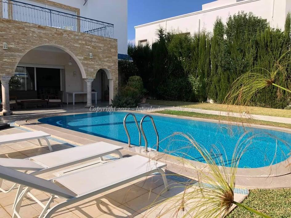 A louer à l'estival chez notre agence la Perle Immobilière une superbe villa avec piscine au 2éme position de la mer sise dans un quartier calme prés de toute commodité à Hammamet Résidence Jinen .