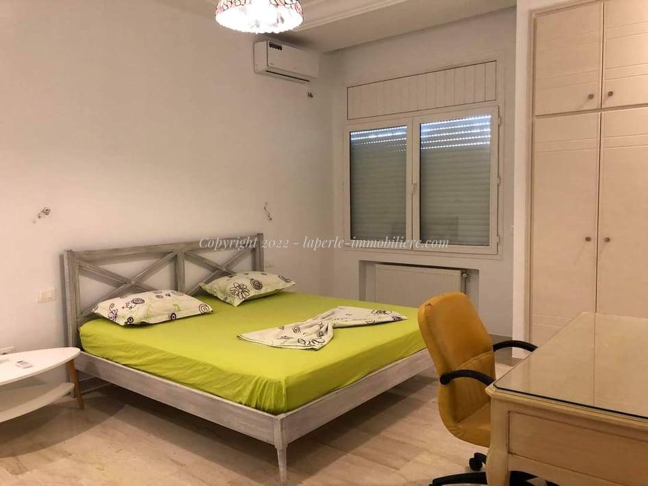 La villa se compose d'un e vaste salon ouverte sur la piscine et le jardin,suite parental avec belle vue sur le jardin et le piscine,deux chambres avec dressing et climatisation ,salle d'eau et douche pour les inviter,cuisine bien équipée et chambre pour le femme de service.