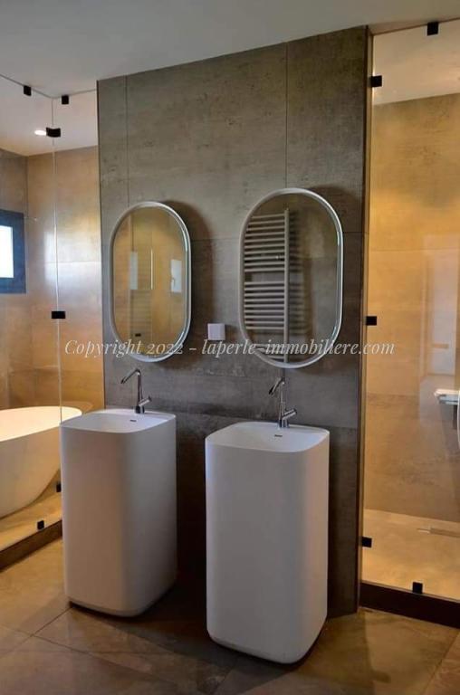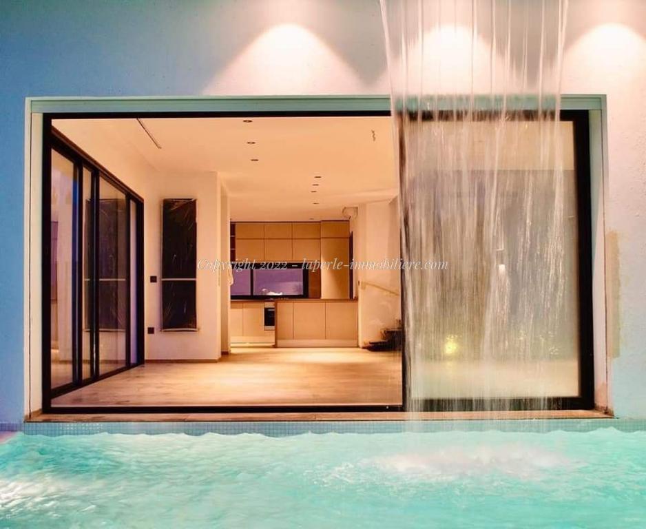 -A vendre une Majestueuse villa S+3 indépendante située à Chotrana ( côté Restaurant La Firma )de haute Standing bâti 300 m² sur un terrain 400 m² se compose comme suite :