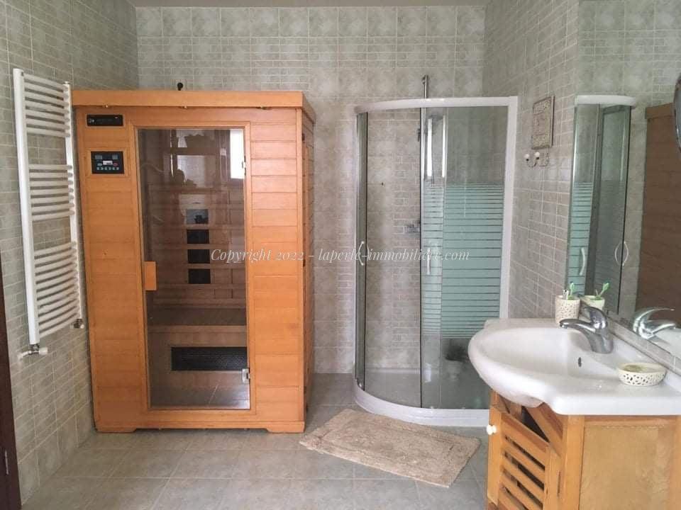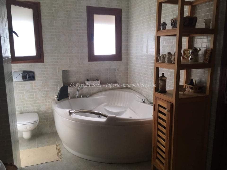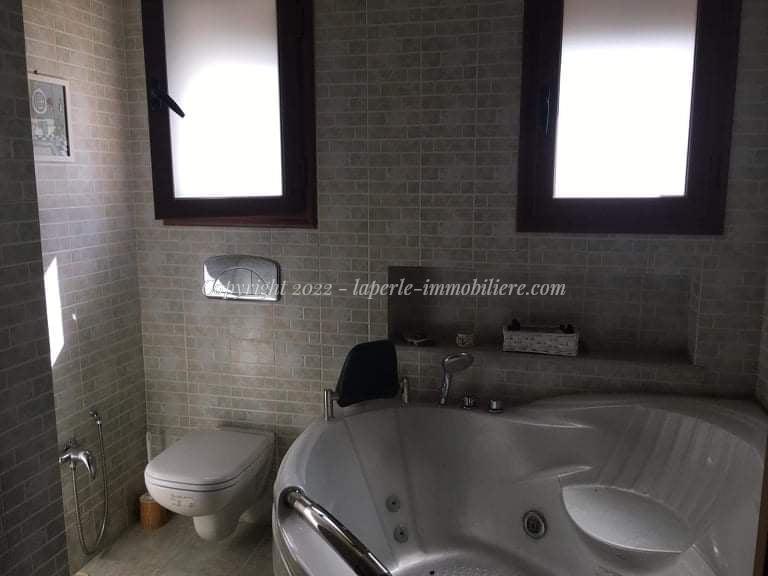 La villa à était bâti par nous même avec les meilleurs matériaux de constructions et jamais louer,elle est dotée de toutes les commodités nécessaires elle se compose de 2 chambres avec armoires murales intégrées et une suite parentale avec un jacuzzi et un sauna et 2 salle de bain et une salle d'eau et un grand salon avec une cheminée qui marche parfaitement, une cuisine avec bar américain très bien équipée, le tout bâti sur 2 étages.