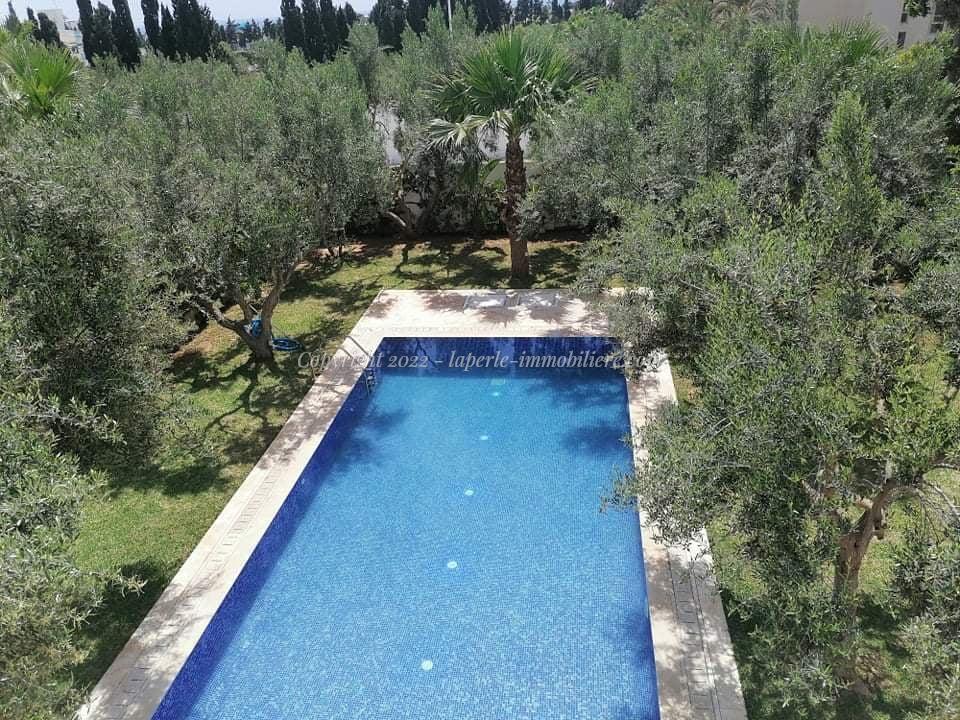 Au rez-de-chaussée on trouve un spacieux salon ouvrant sur une belle terrasse donnant une impressionnante piscine et un beau jardin , suite parentale ,Une cuisine moderne et une salle d’eau.